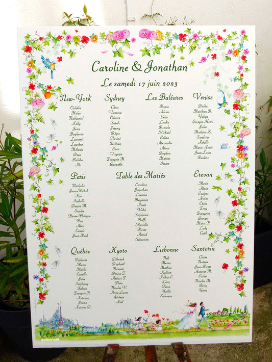 Tableau de Bienvenue personnalisé illustré frise vigne et coquelicots